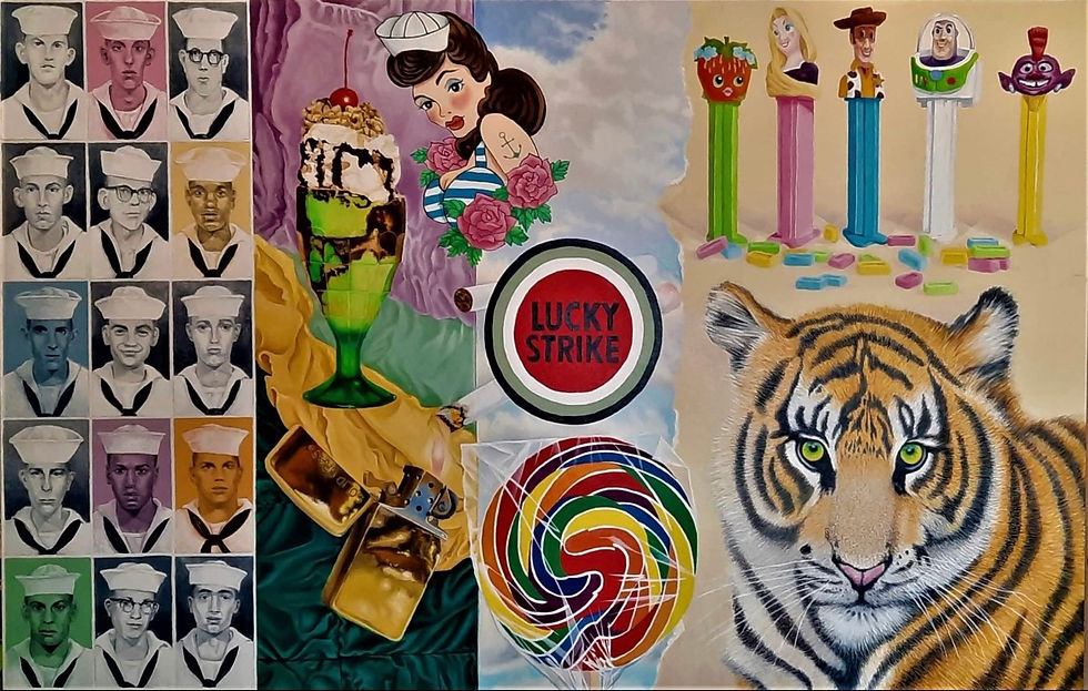 Bob Stickloon. “Tiger and Lucky Strikes”. 36” X 58”